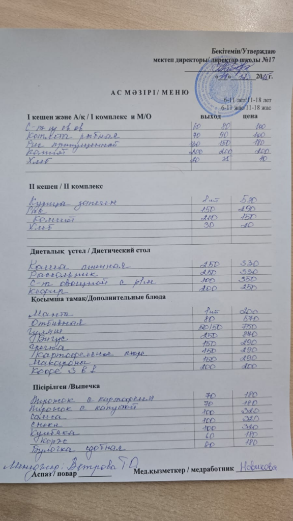 Меню на 11.12